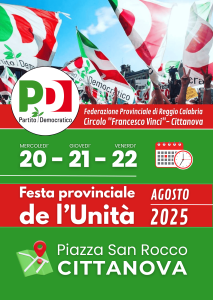Festa Provinciale de l’Unità Federazione di Reggio Calabria. Piazza San Rocco – Cittanova 20, 21 e 22 agosto