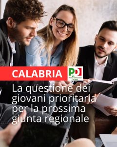 “Un’intera generazione – prosegue la nota del Pd – vive ai margini, tra precarietà e rinunce. Il 26,8% delle famiglie calabresi è in povertà relativa e quasi il 16% dei giovani under 35 vive in condizione di esclusione sociale. Il centrosinistra vuole affrontare di petto questa emergenza, con 10mila assunzioni di giovani in ambito pubblico. È un impegno forte per dare lavoro, rafforzare i servizi e frenare lo spopolamento. È l’unico modo – concludono i dem – per restituire speranza e futuro ai ragazzi calabresi”.